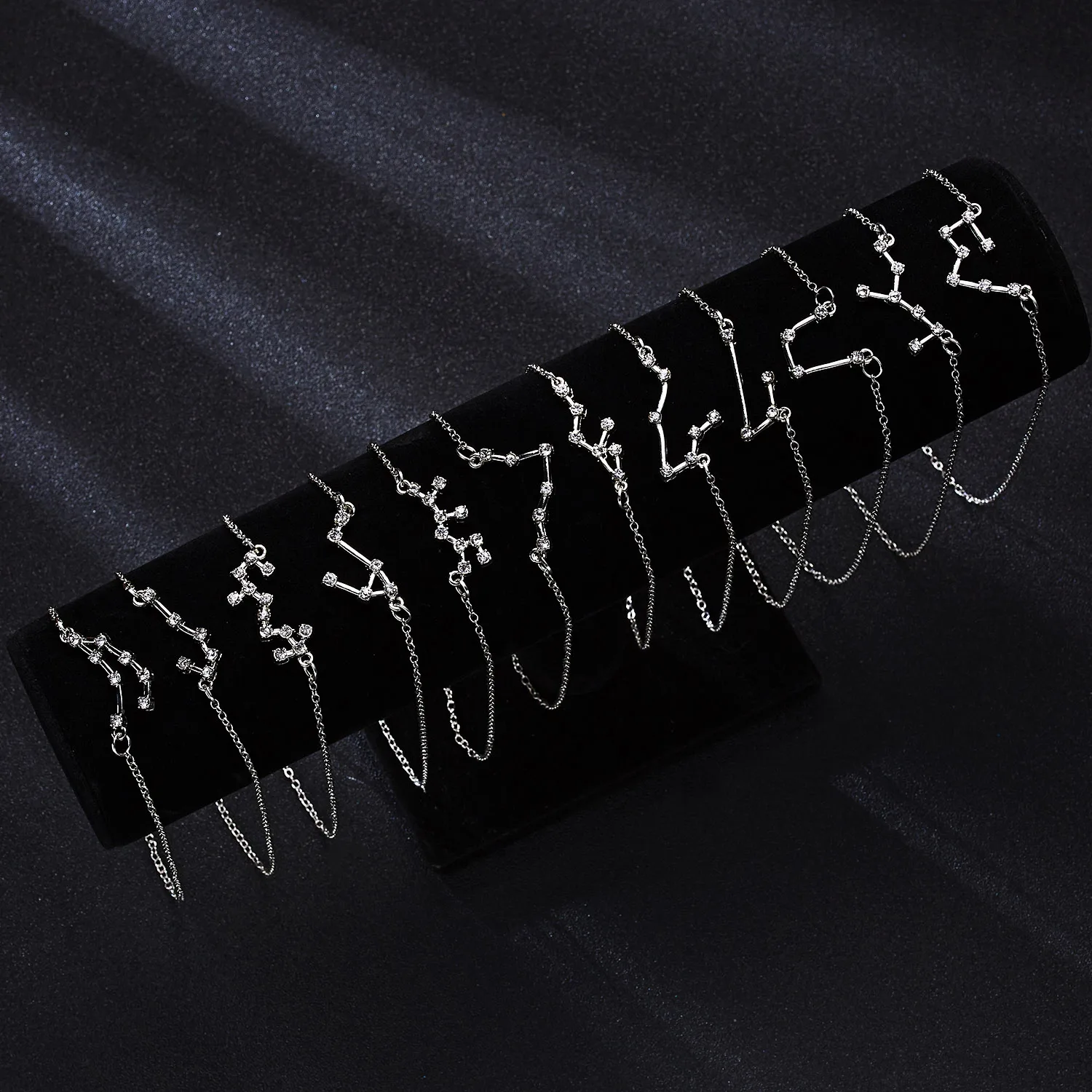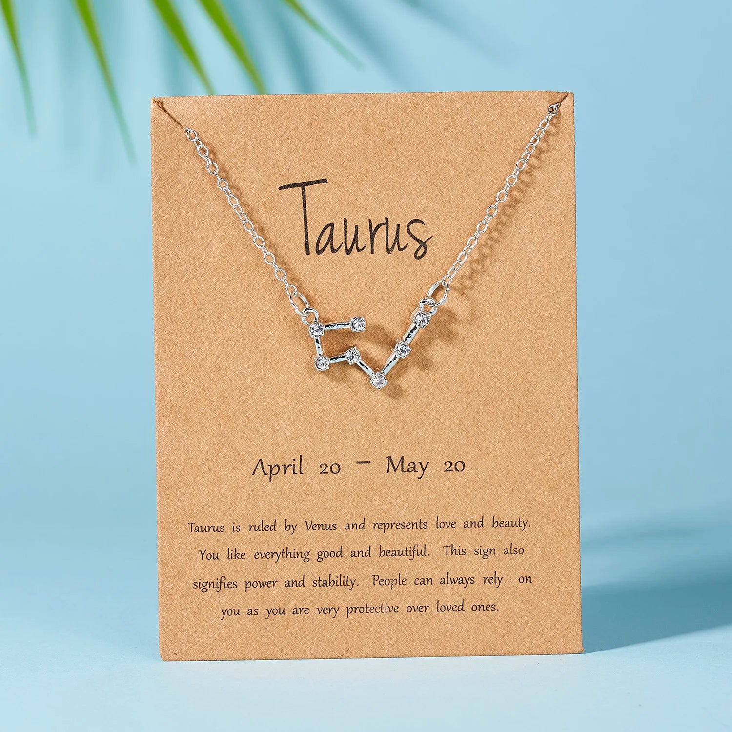 12 Constellation Zodiac Sign Necklace For Women Silver Color Jewelry Leo Aries Pendant Horoscope Necklace Chain Choker Gift