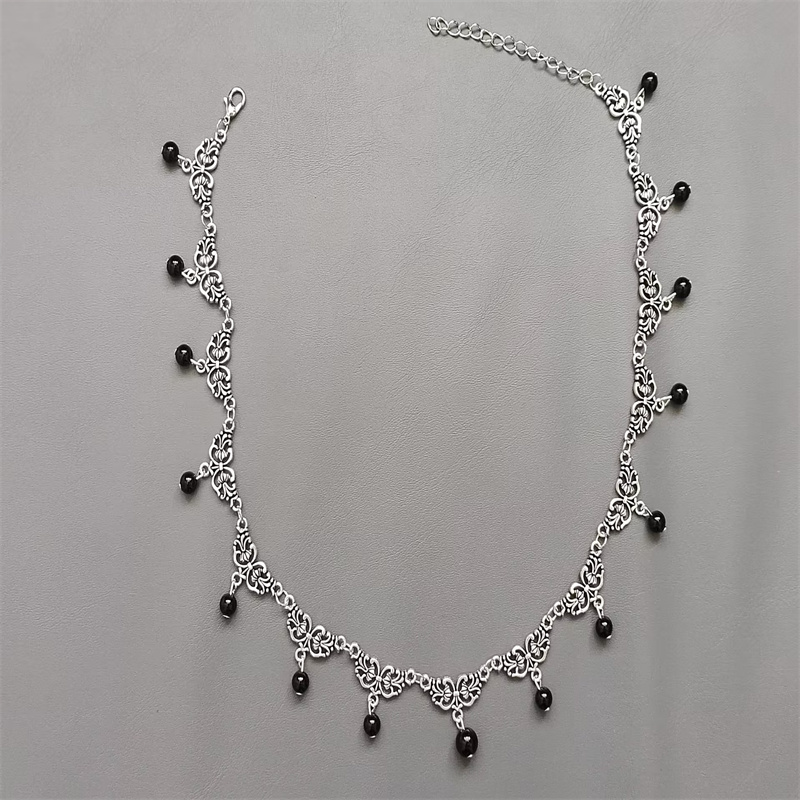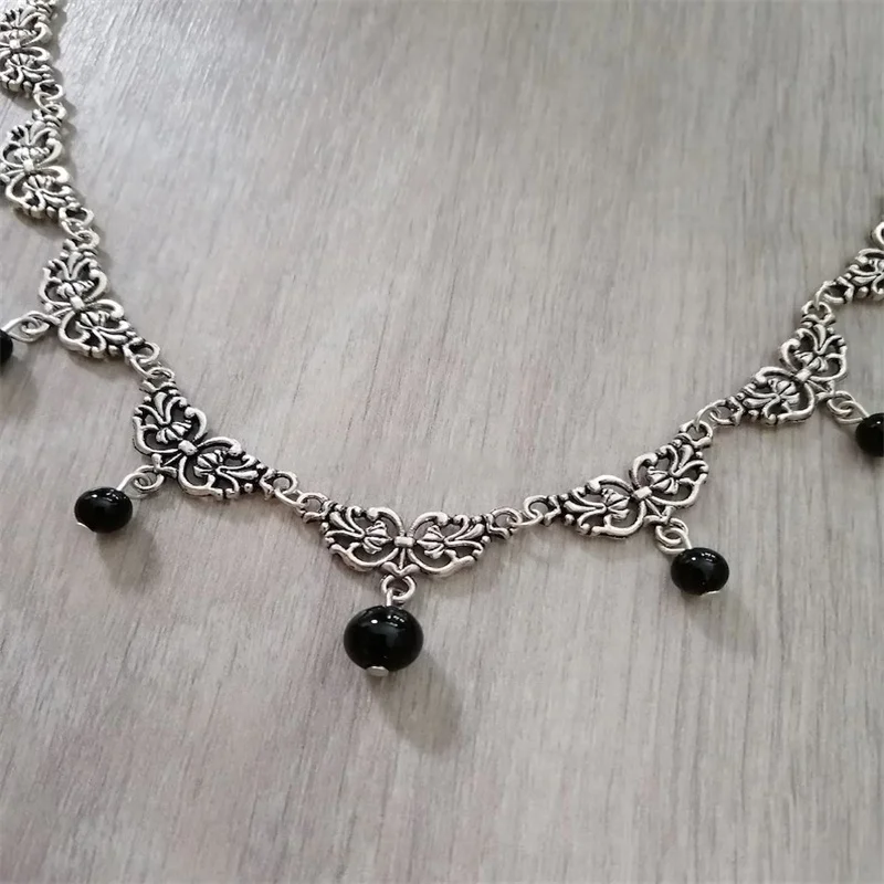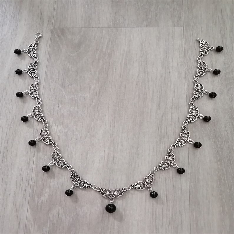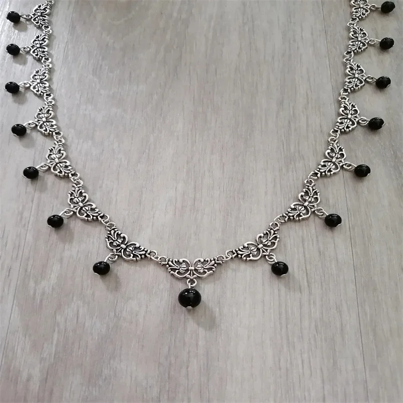 Black onyx necklace, gemstone, black, goth, gothic, victorian, witchy, wicca, pagan, medieval