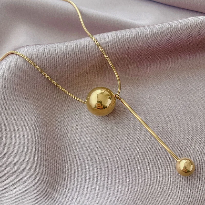 Classic Design Double Golden Round Bead Pendant Necklace Women's Fashion Titanium Steel Bead Choker Luxury Party Jewelry Gift