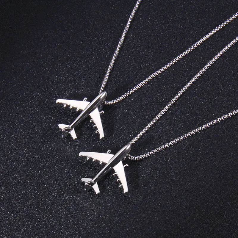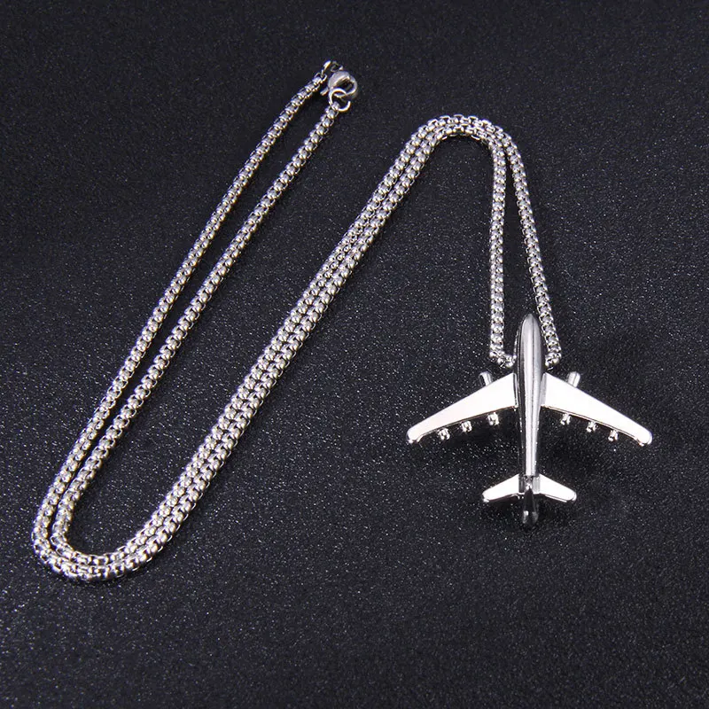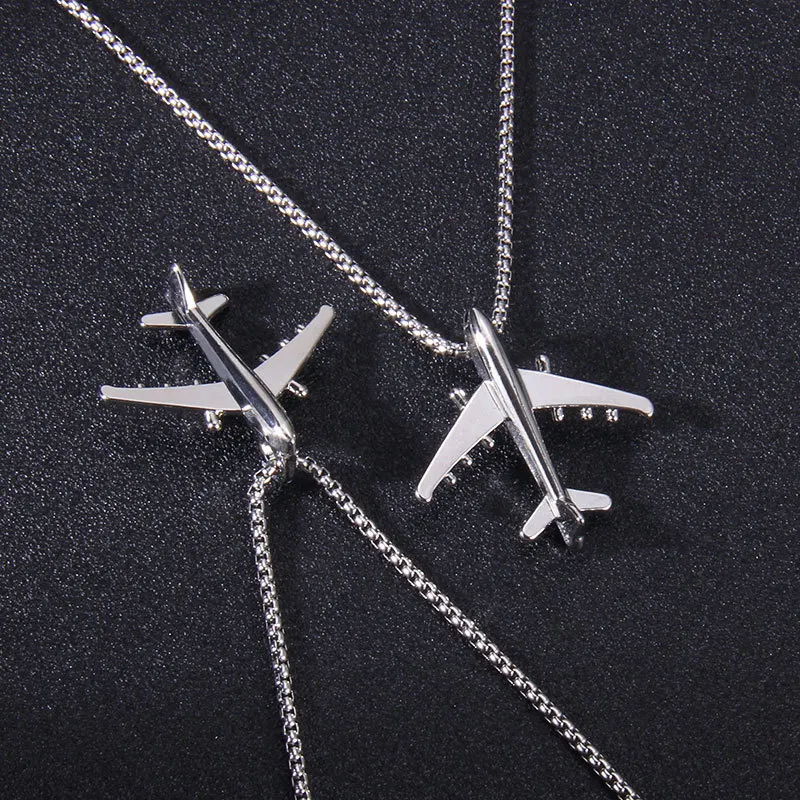 Classic niche design trendy men's and women's airplane necklace simple hip-hop nightclub dance cute airplane pendant gift