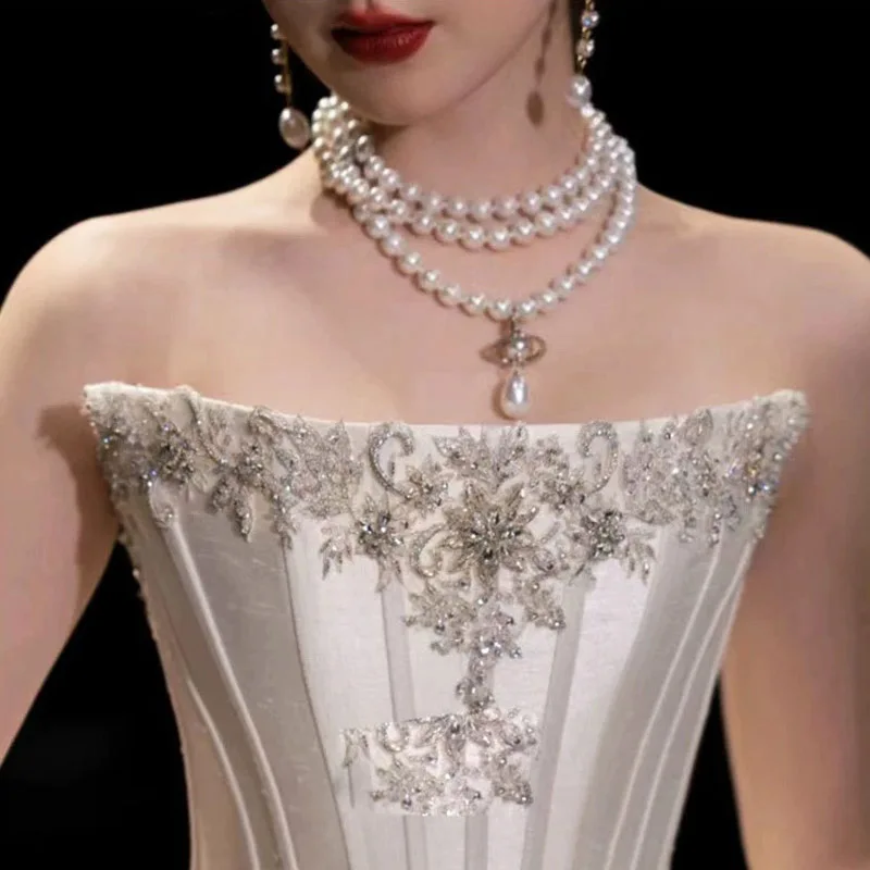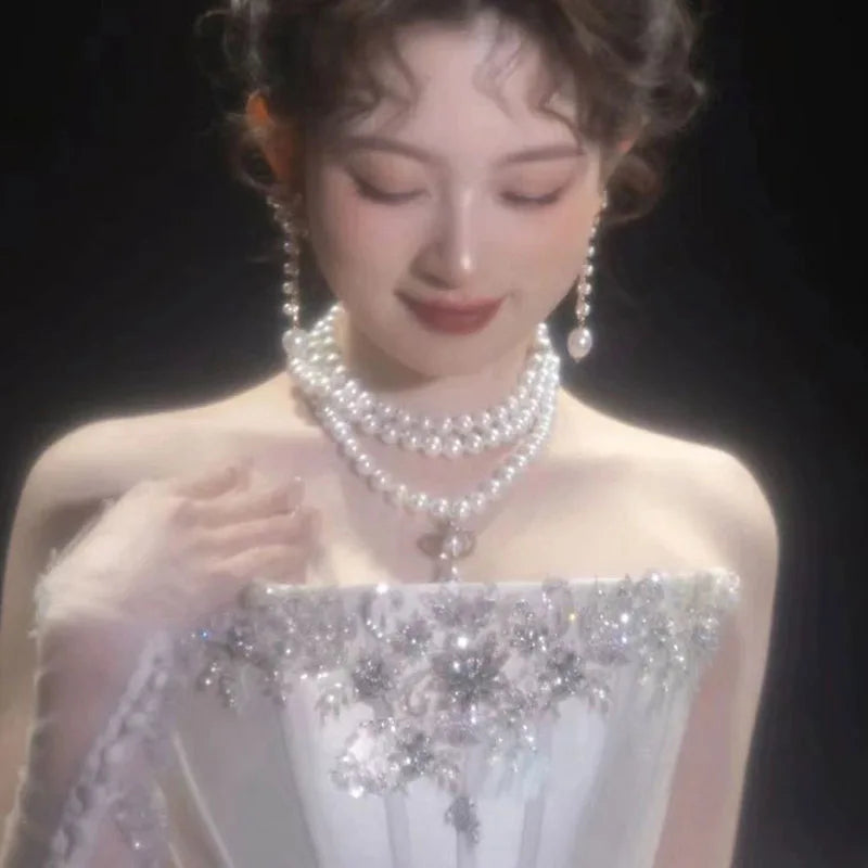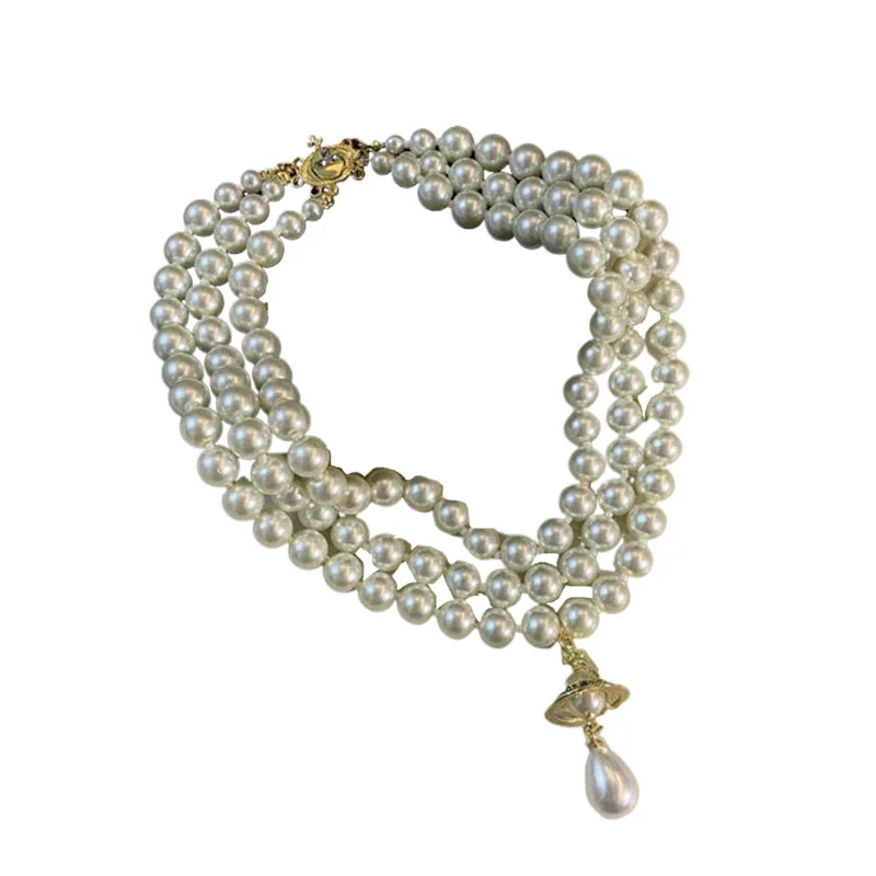 Classic Three Layers Round Pearls Beaded Collar Choker Necklace For Women Girls Irregular Water Drop Pearl Pendant Necklace Gift