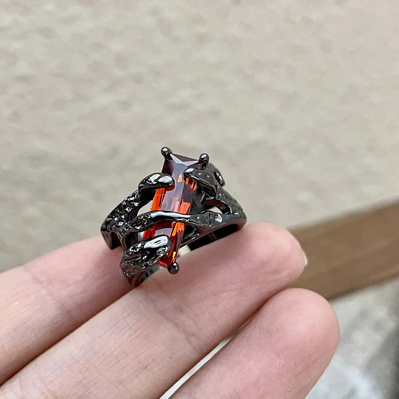 Dark Style European and American Red Jewelry Girls Light Luxury Niche Personality Retro Fashion Hollow Design Wedding Ring