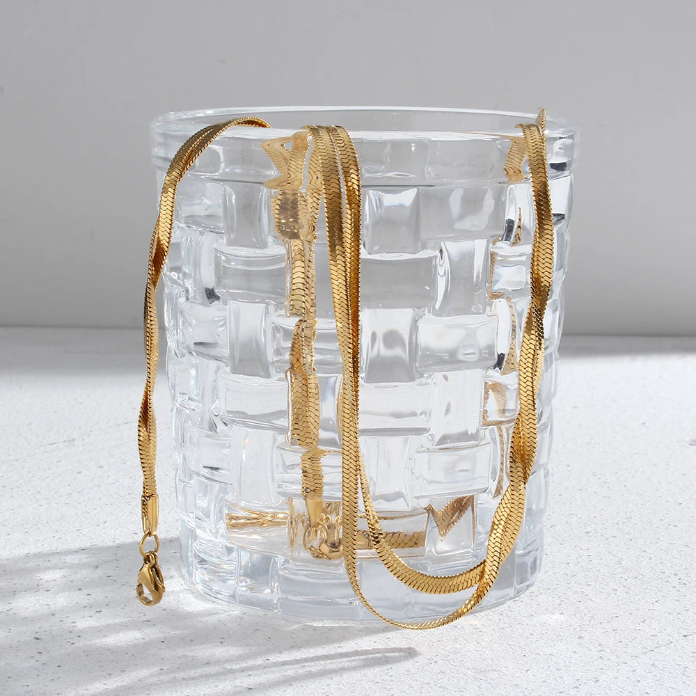 E.B.belle Gold Plated Waterproof Braided Herringbone Chain Necklace Bracelets Set Wholesale Stainless Steel Jewelry For Women
