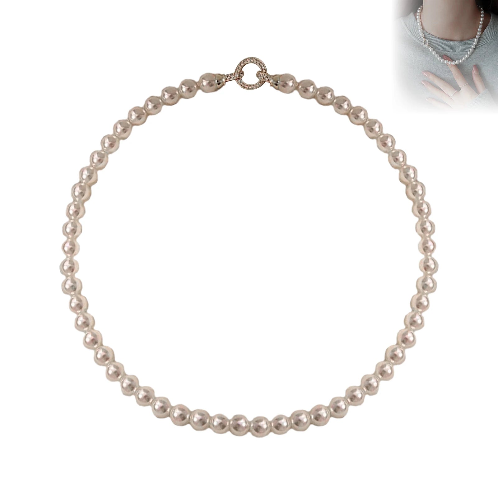 Elegant Pearl Necklace For Women Fashionable 8mm Bead String Clavicle Chain Light Luxury Dress Necklace Jewelry Neck Accessories
