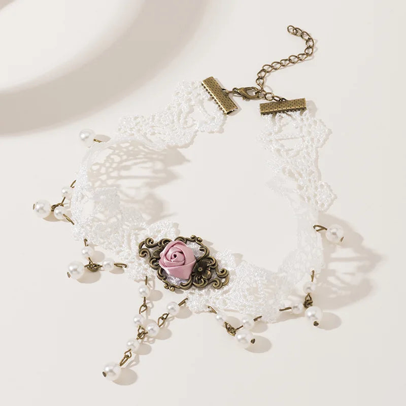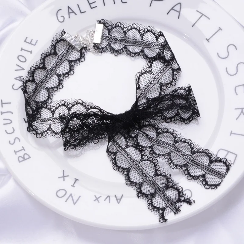 Fashion Choker Necklace For Women Sexy Black White Lace Stretch Strip Pendant Short Clavicle Gothic Necklace Aesthetic Jewelry