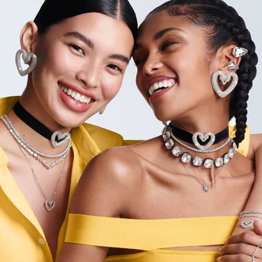 Fashion Y2k Heart Choker Necklace Elastic Rope for Girl Party Gift Romantic Valentine's Day Gift Rhinestone Collar Jewelry Women