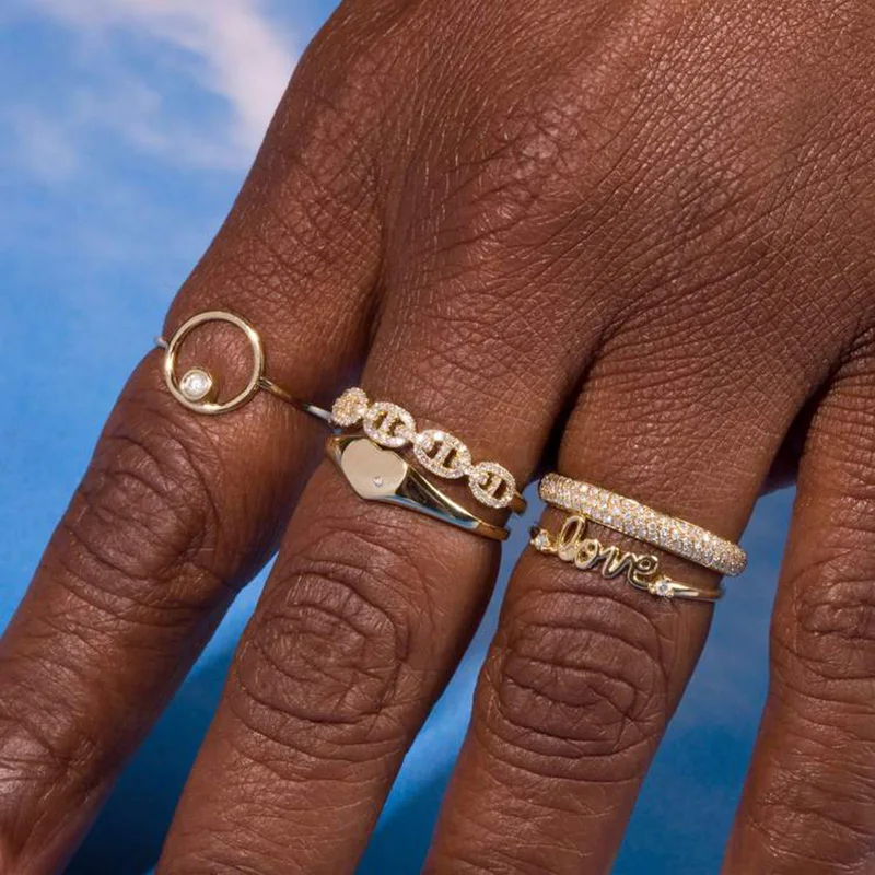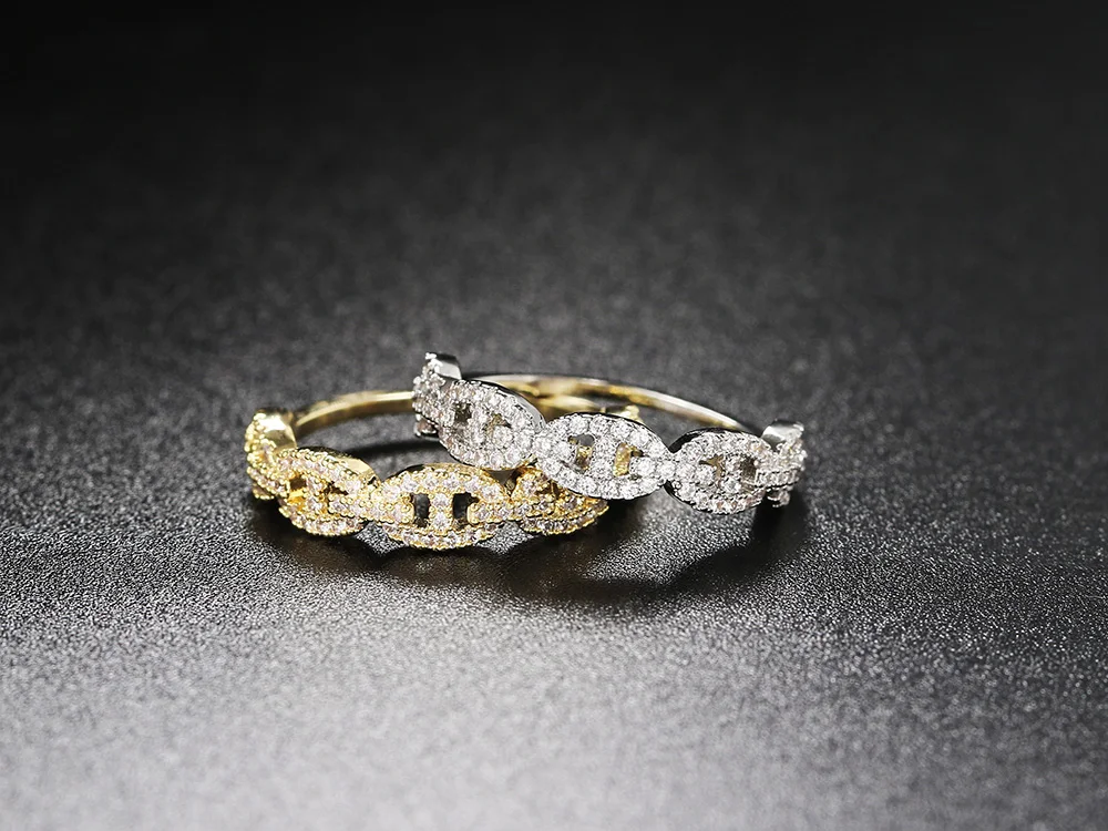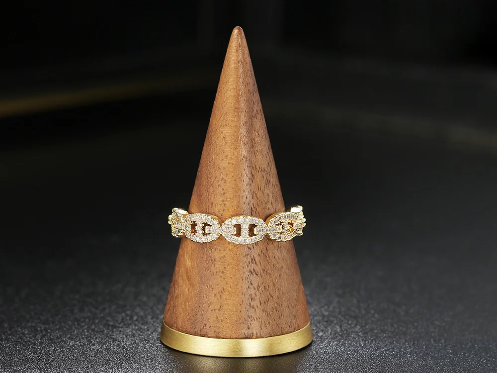 Hip Hop Link Ring for Women Gold Color Micro-inlaid Zircon Stacking Rings Female Jewelry Fashion Punk Accessories Wholesale R720