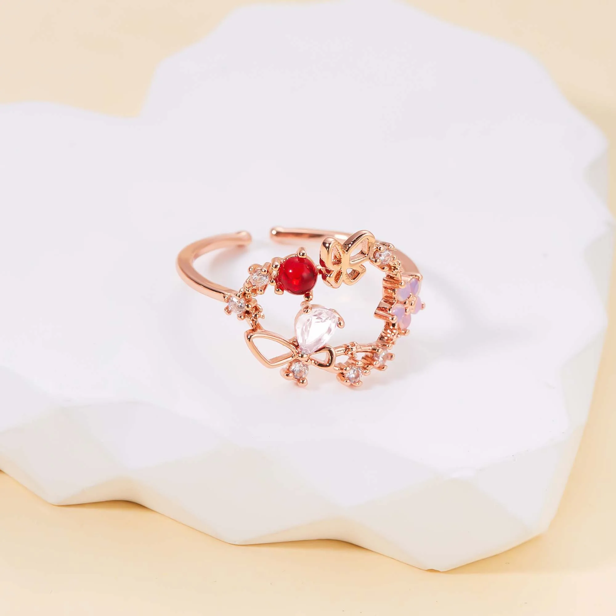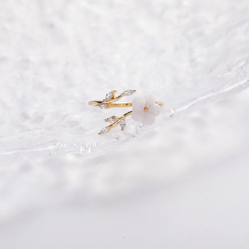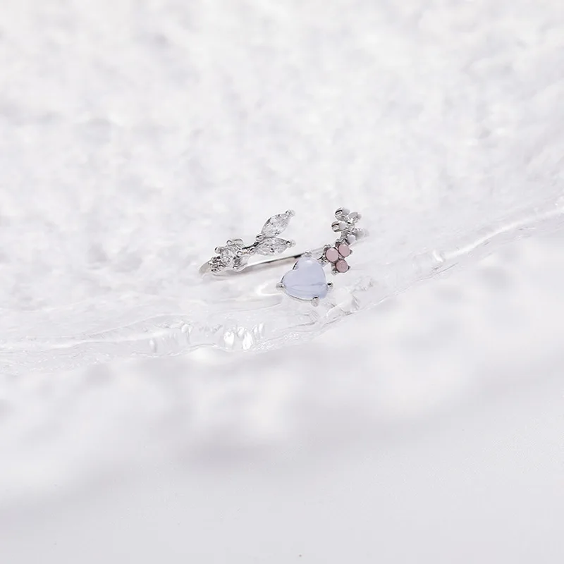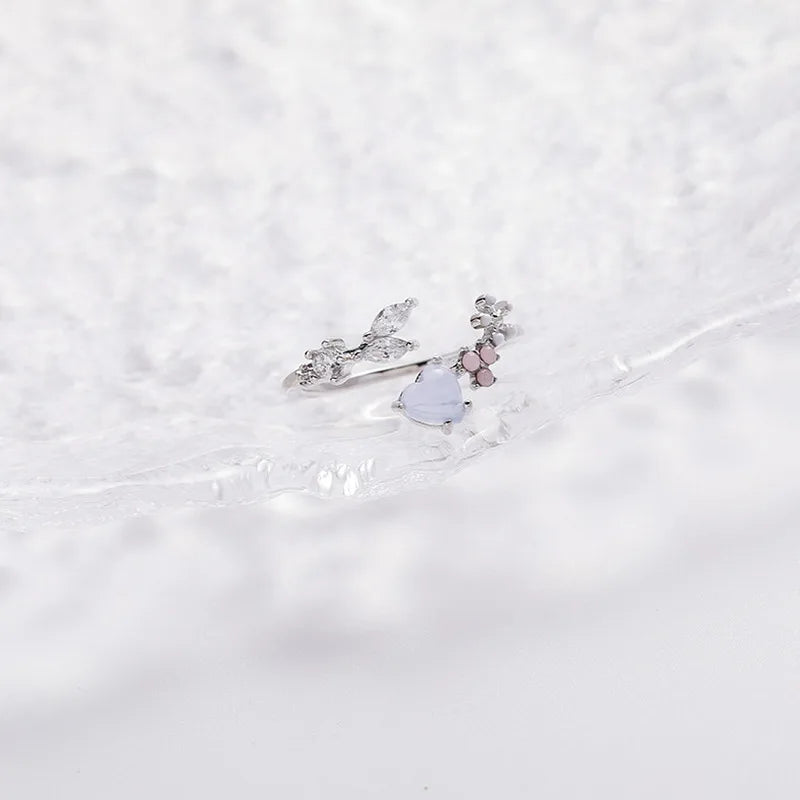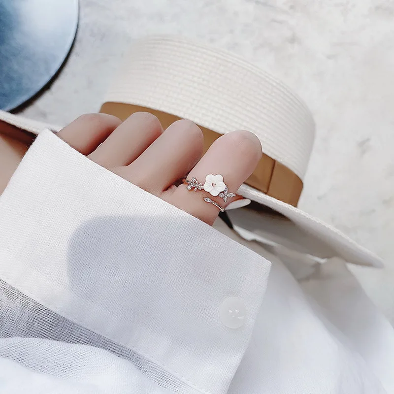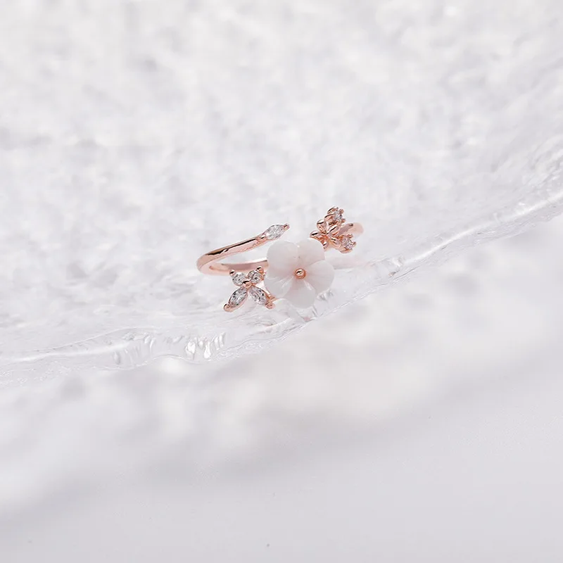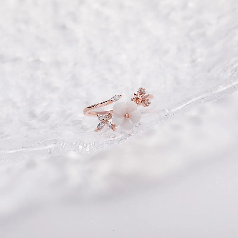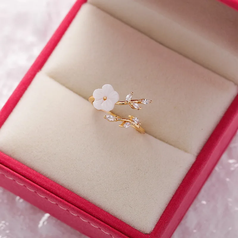 Korean CZ Sweet Crystal Zircon Heart Ring For Women Exquisite Shell Flower Opening Finger Rings Girls Princess Wedding Jewelry