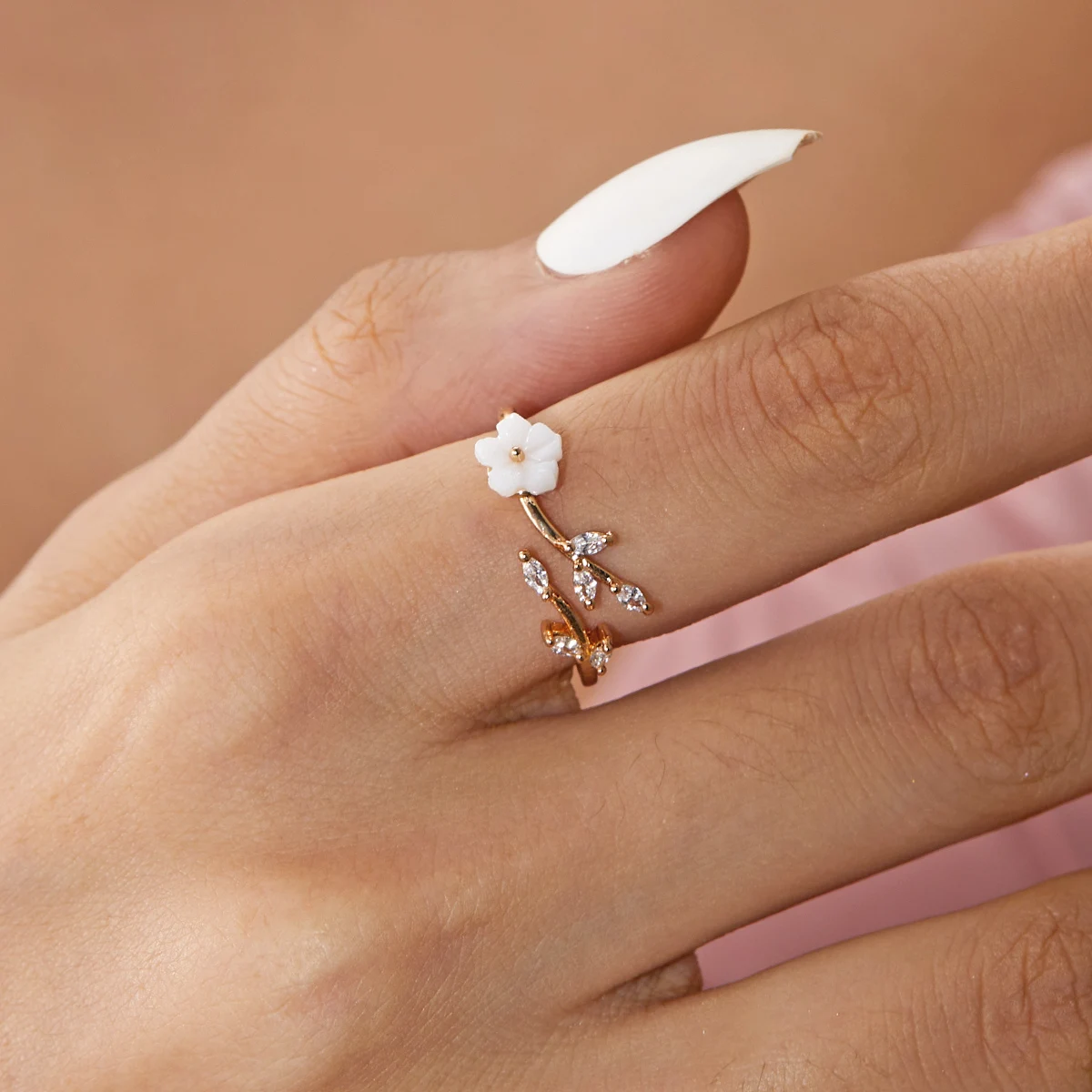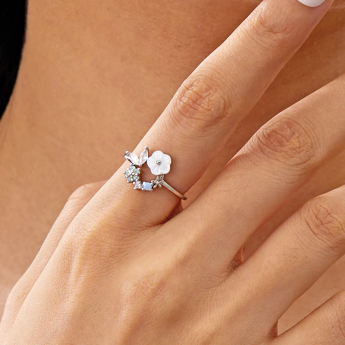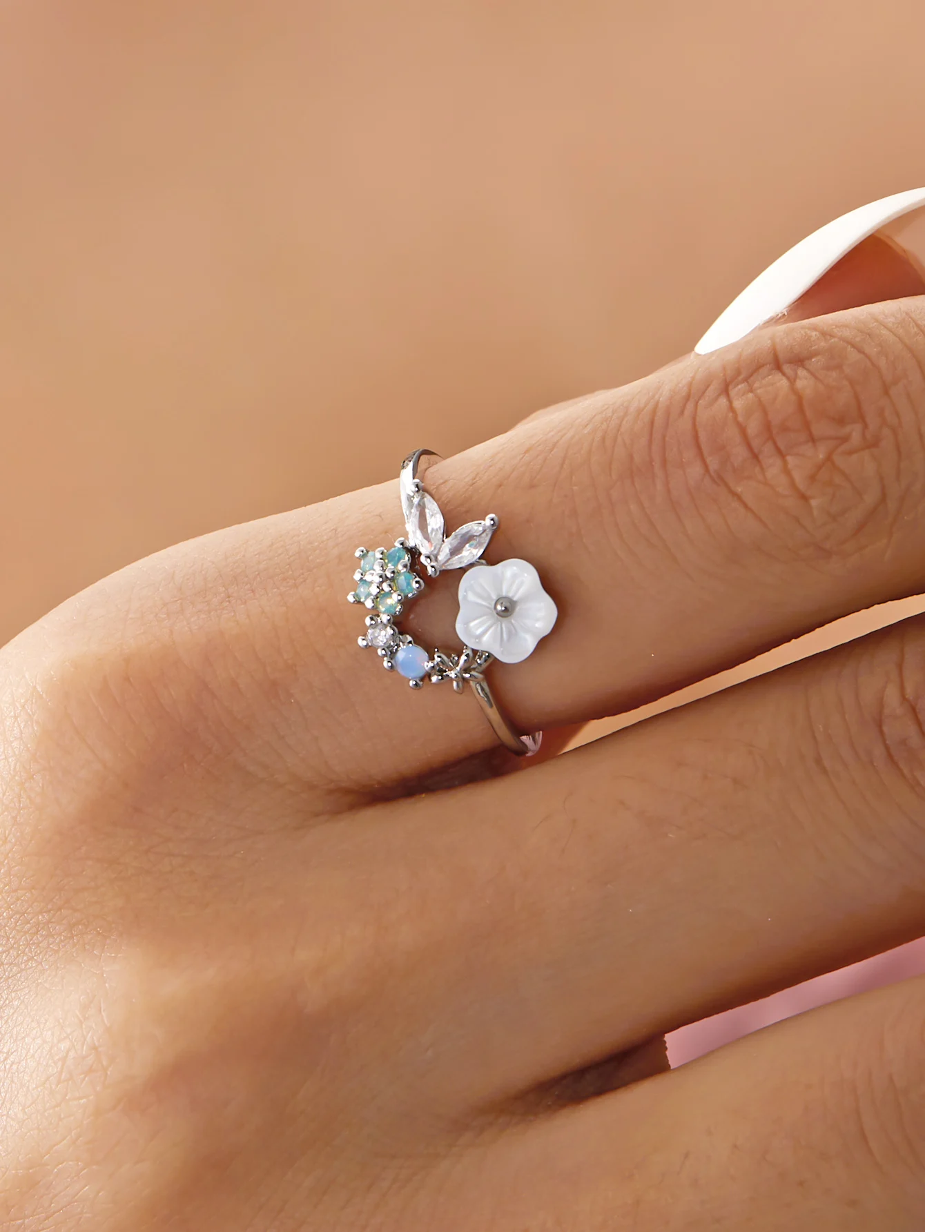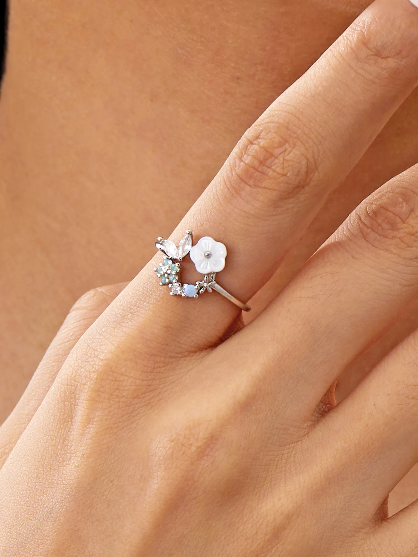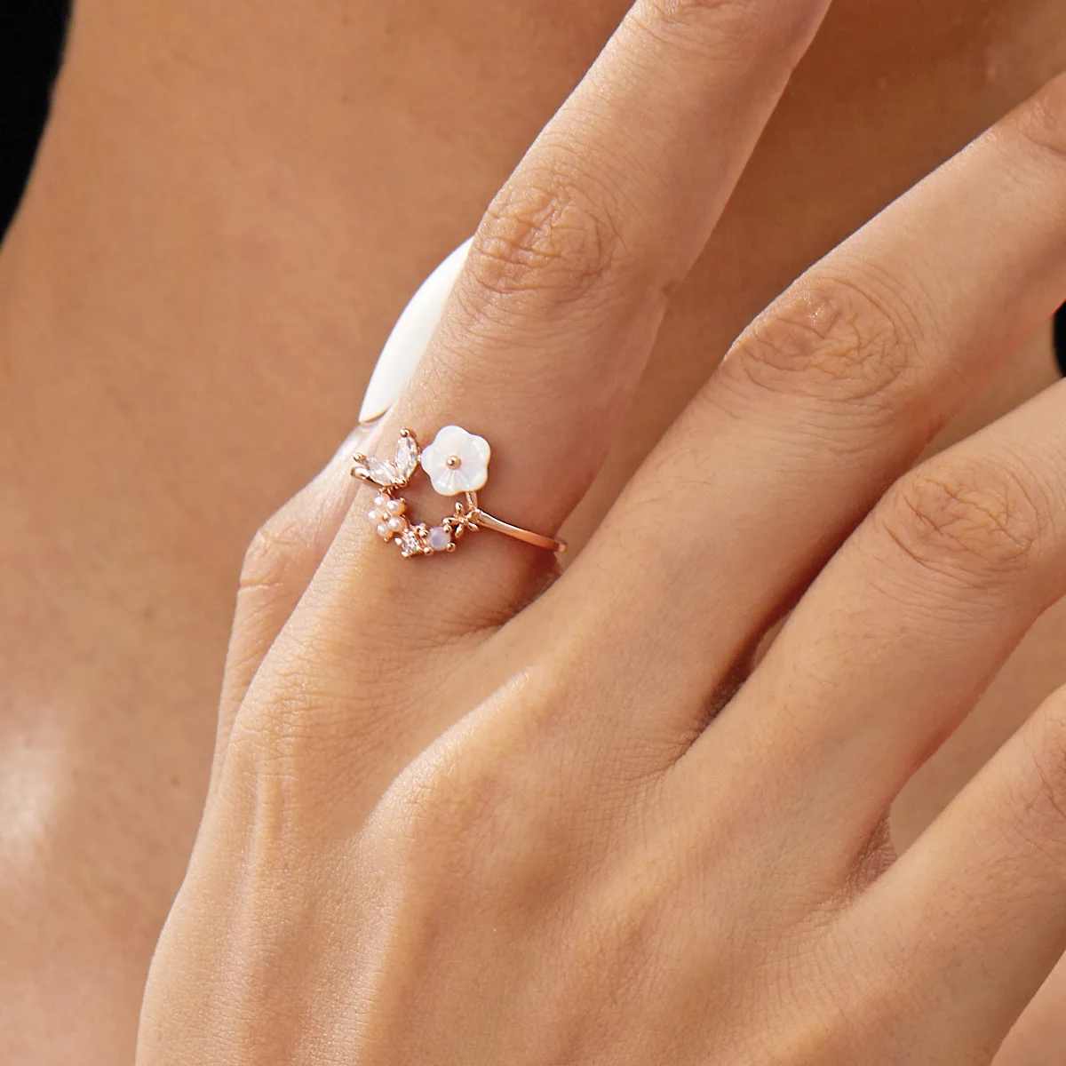 Korean CZ Sweet Crystal Zircon Heart Ring For Women Exquisite Shell Flower Opening Finger Rings Girls Princess Wedding Jewelry