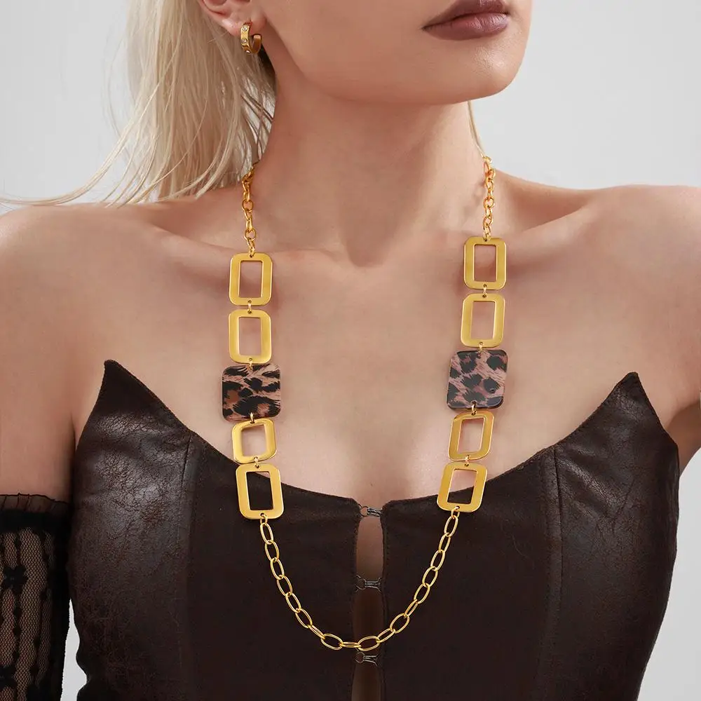 Necklace for Women Leopard Print Stainless Steel Acrylic Pendant Long Chain Sweater Link Gorgeous Charm Jewelry Gift