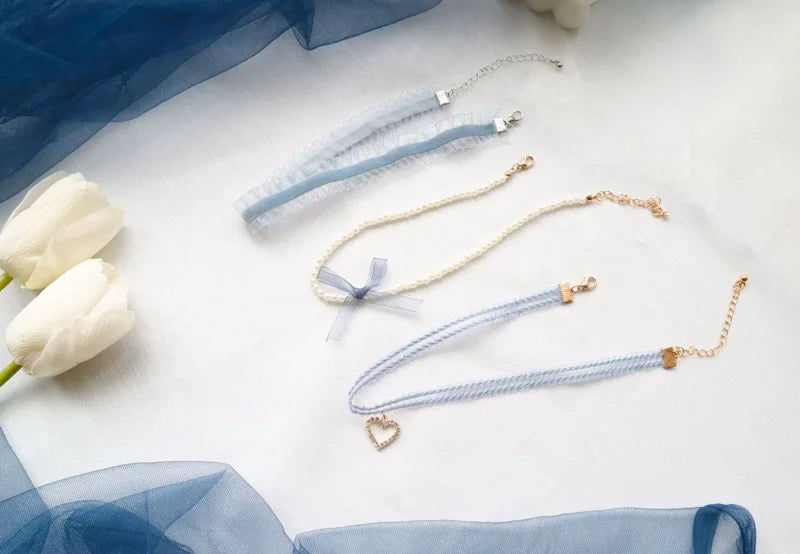 Necklace for Women Short Clavicle Lace Sexy Hearts Pearl Leaf Bow Butterfly Star Choker Lady Party Jewelry Girl Gift