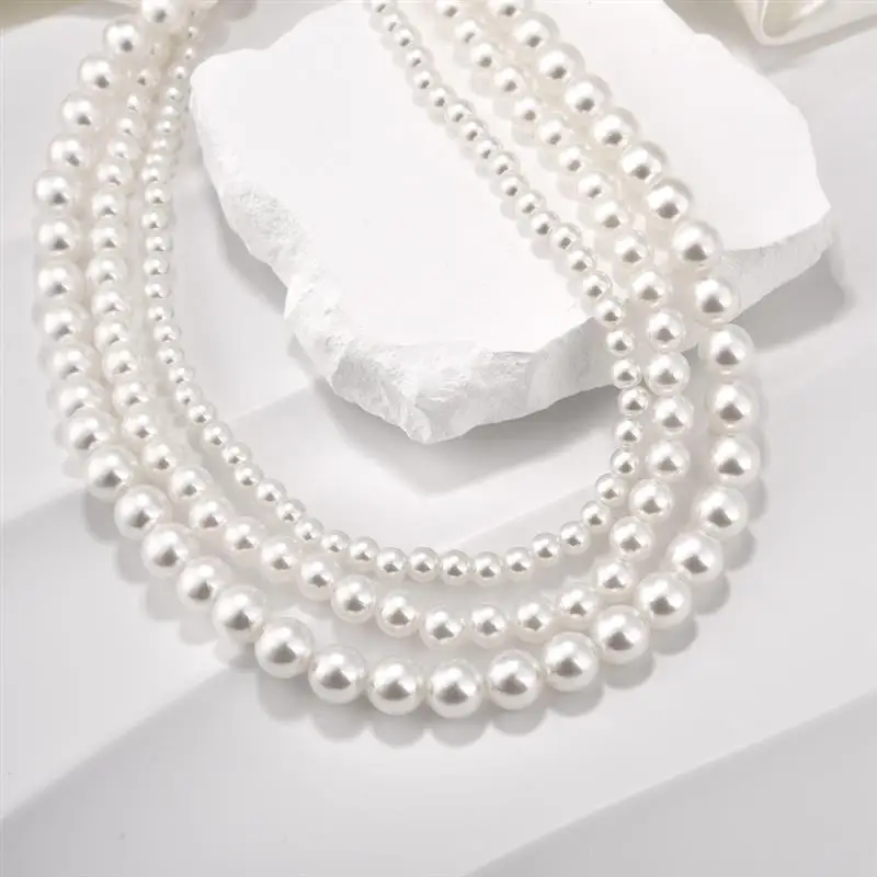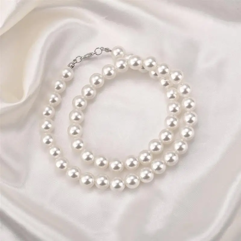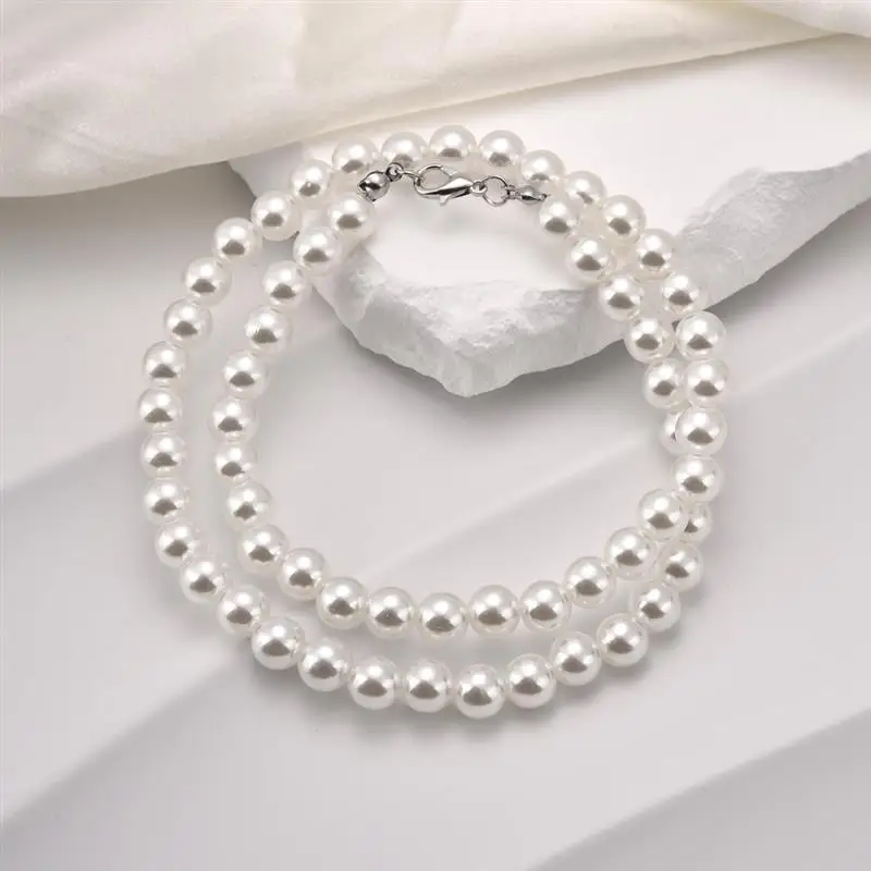 New Trendy Imitation Pearl Necklace For Men Temperament Simple Handmade Strand Bead Necklace Men Fine Jewelry Wedding Gift