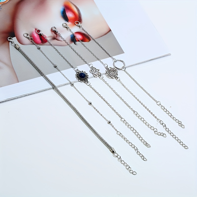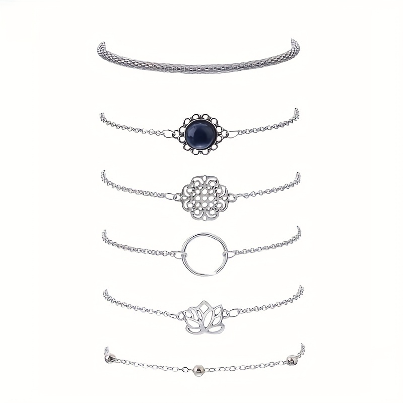 Six-piece Bohemian Ethnic Style Personalized Bracelet Set with Simple Hollow Lotus Leaf Round Stone Flower Pieces