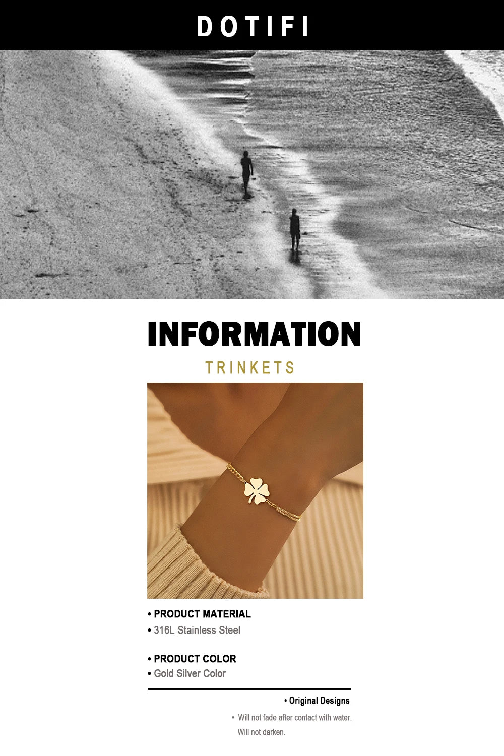Stainless Steel Bracelets Classic Lucky Clovers Pendant Hip Hop Bracelet For Women Jewelry Non-fading High-quality Everyday Wear
