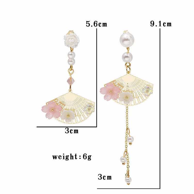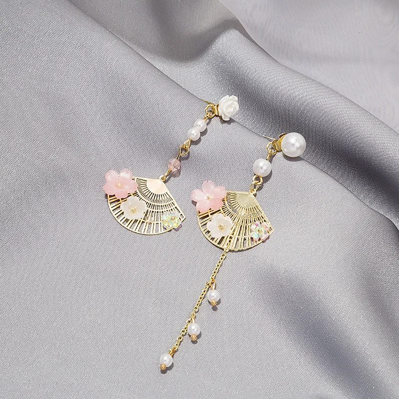 Vintage Chinese Style Flower Fan Earrings for Women Cute Asymmetrical Crane Cat Drop Earring 2022 New Trend Charm Jewelry