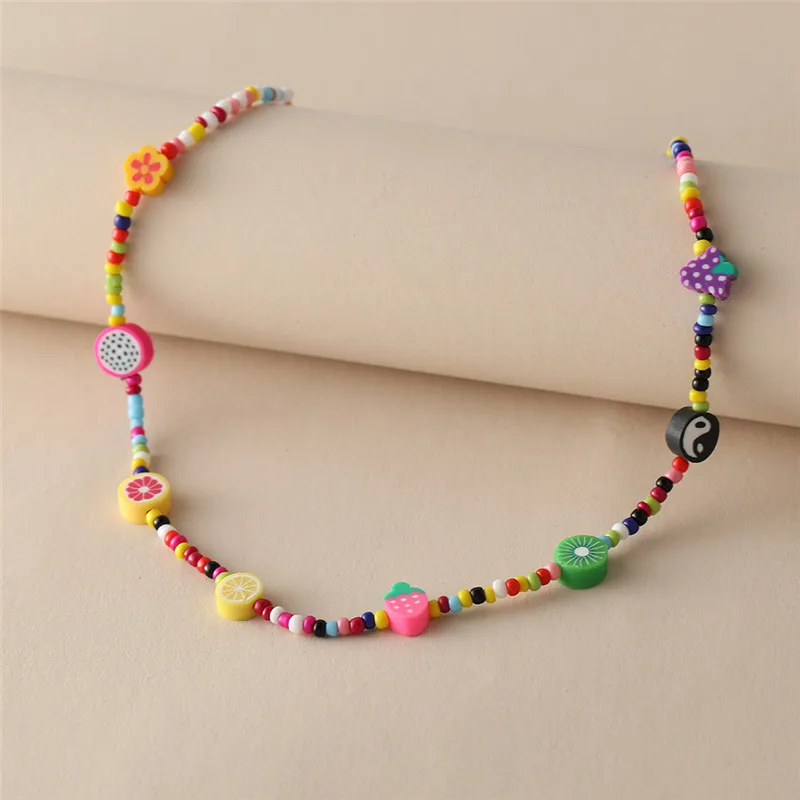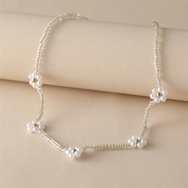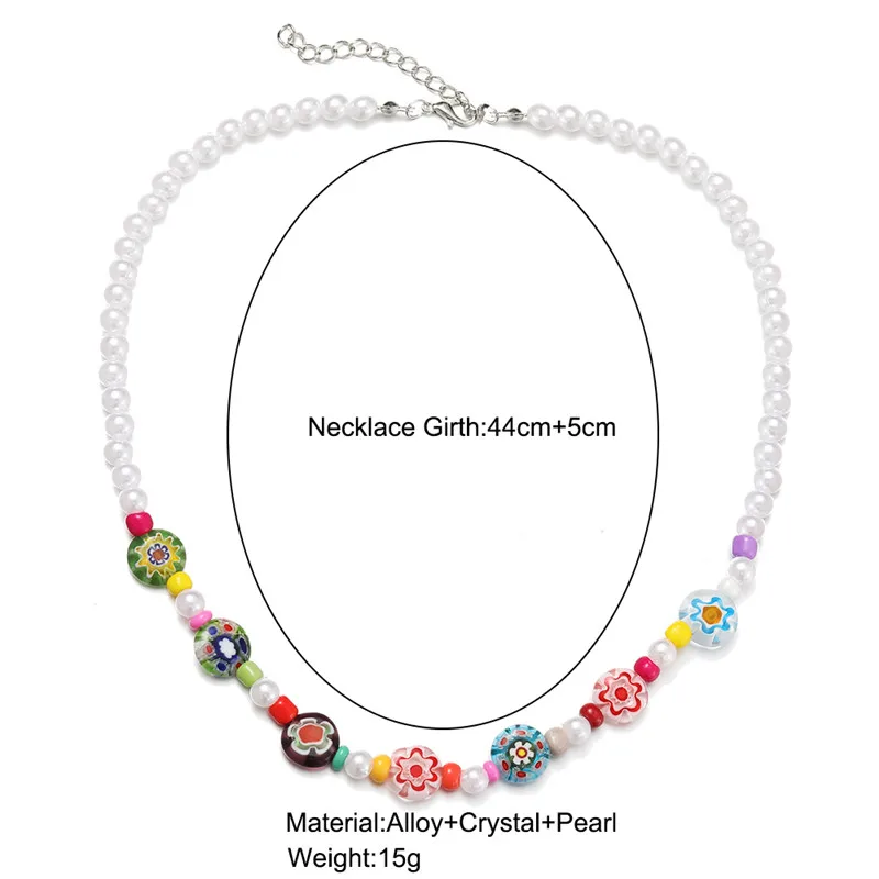 Y2K Flowers Charms Pearl Choker Necklace For Women Boho Colorful Beaded Clavicle Chain Short Necklaces Jewelry Gift 2024