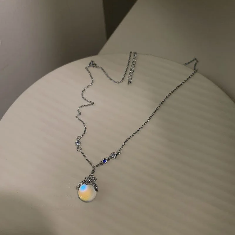 Y2k Heart Firefly Necklace for Female Ins Tide Palace Retro Gentle Imitation Moonstone Collarbone Chain Necklace Accessories