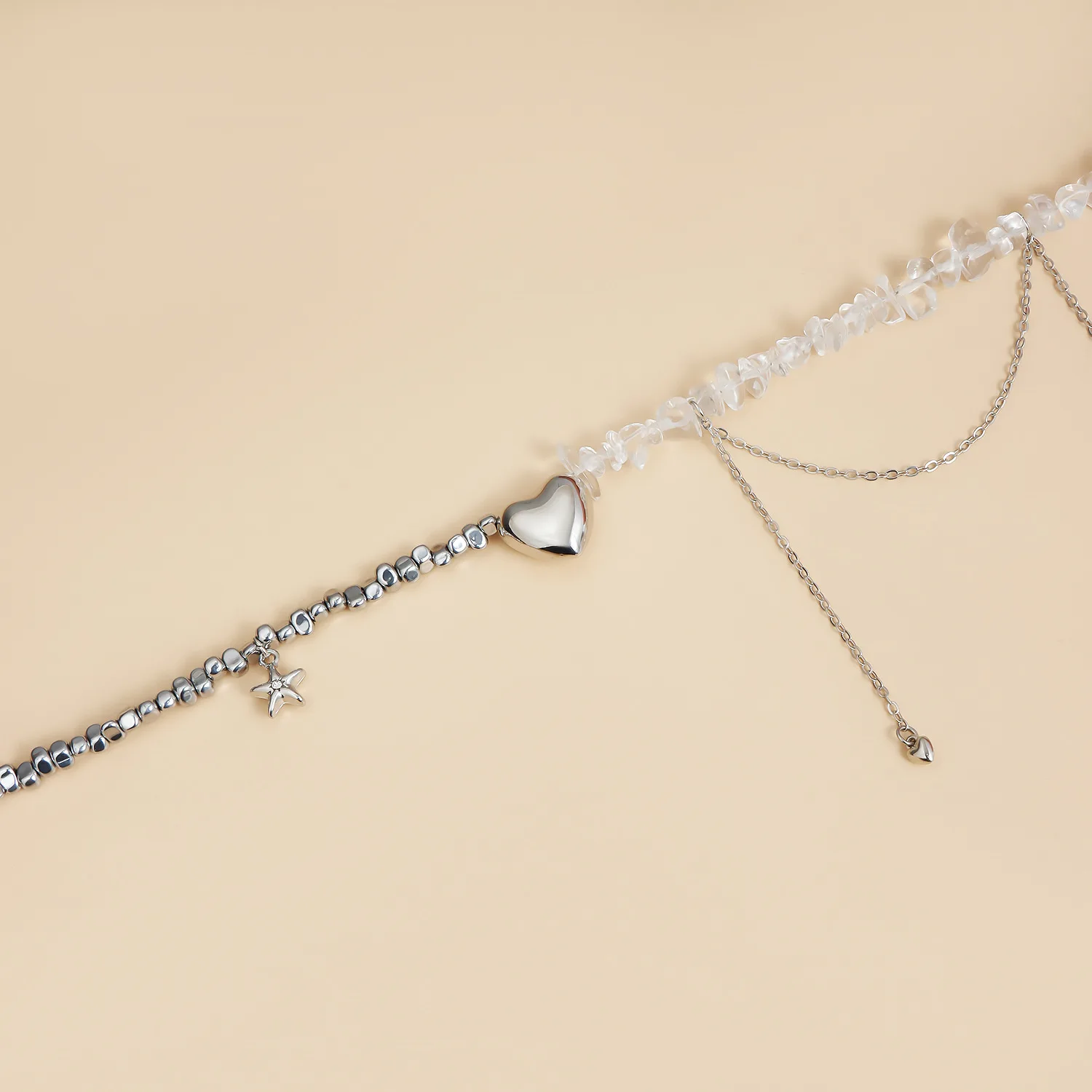 Y2K Irregular Stone Necklace For Women Beads Chain Heart Pendant Elegant Tassels Fashion Women's Jewelry Gift