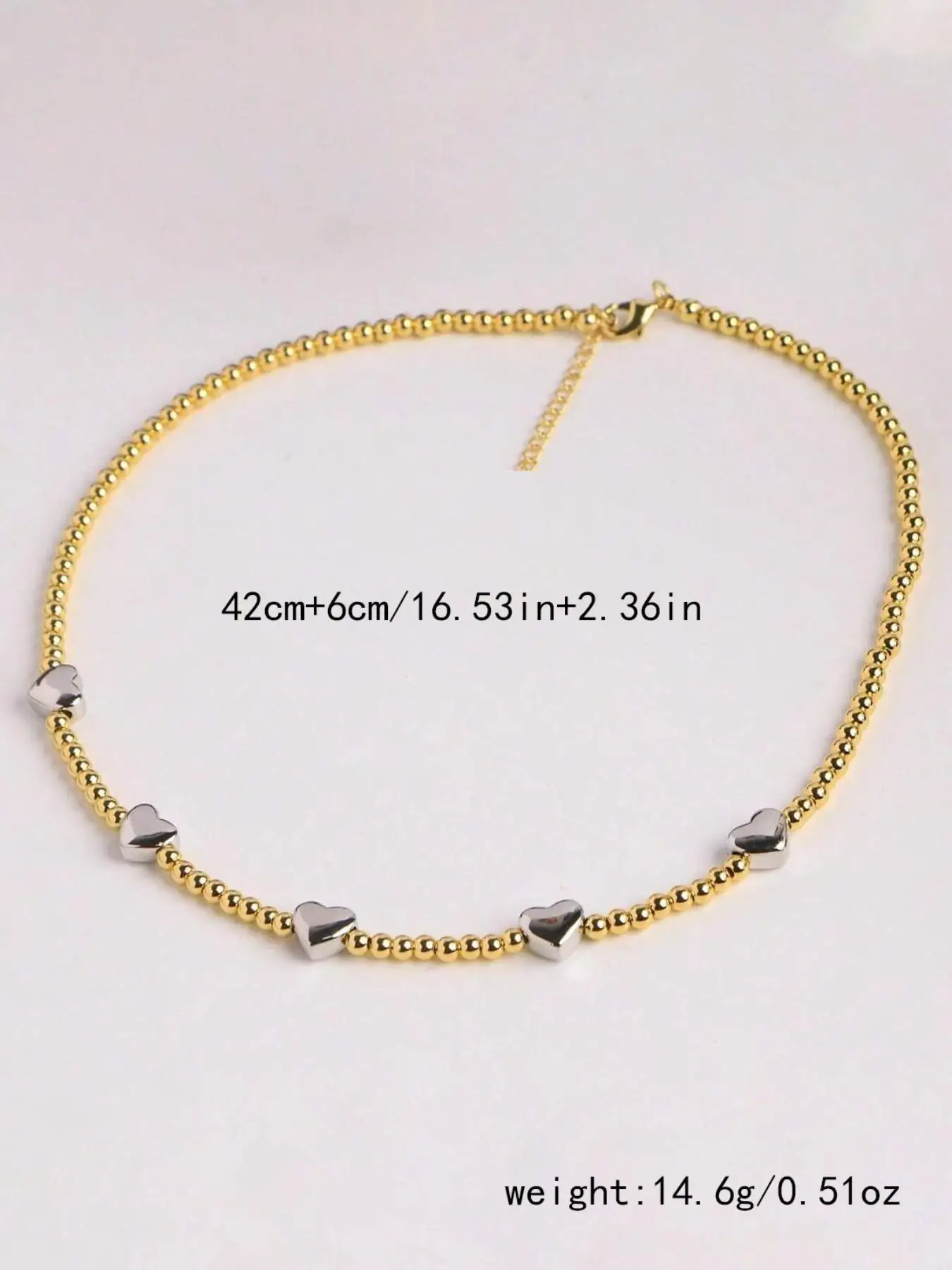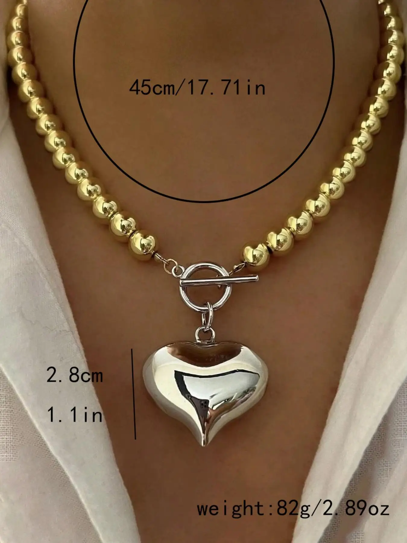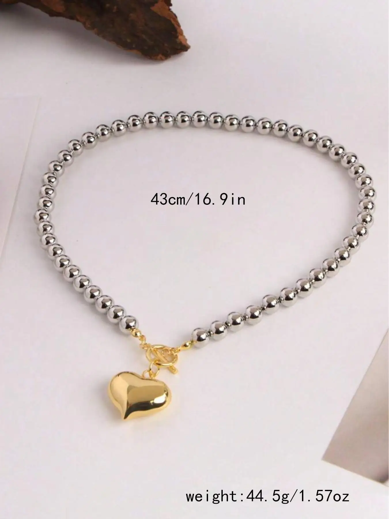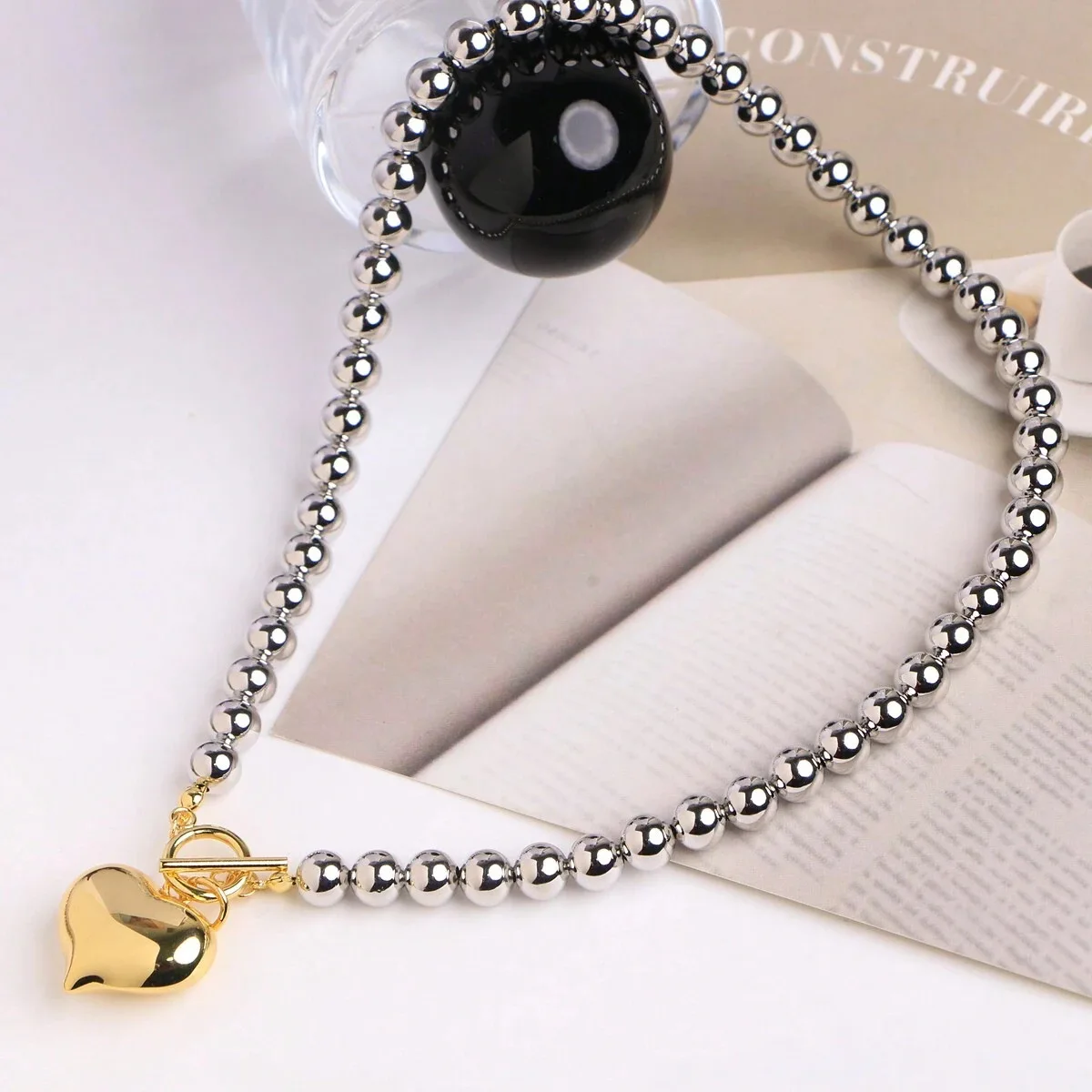 Y2k Stainless Steel Heart Pendant Bead OT Clasp Necklace For Women Men Fashion Geometric Charm Necklace Party Jewelry Gifts