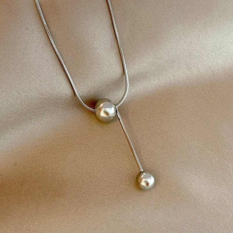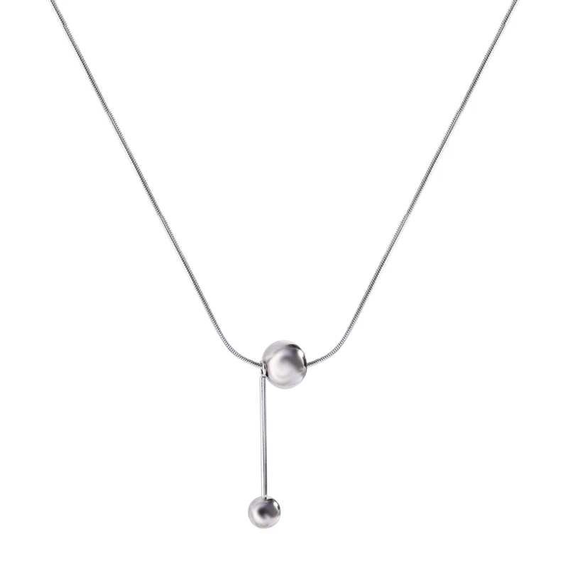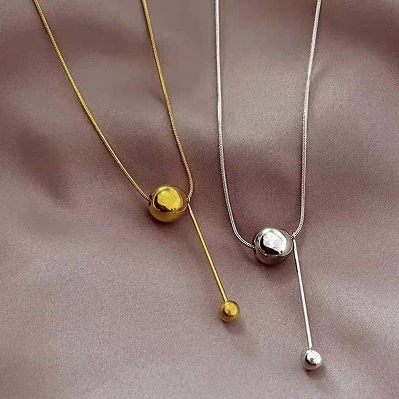 Yerik Fashion Simple Ball Pendant Necklace for Women Metal Beads Minimalist Personality Jewelry Snake Bone Chain Jewelry Gifts