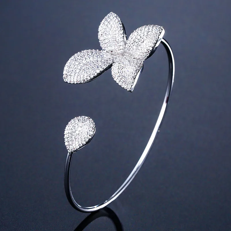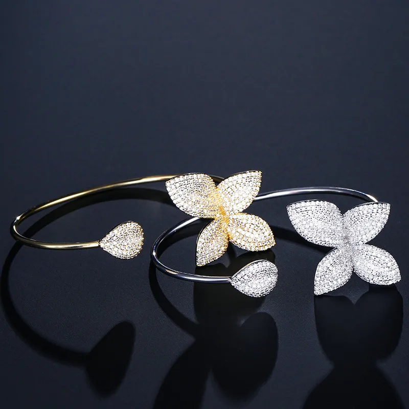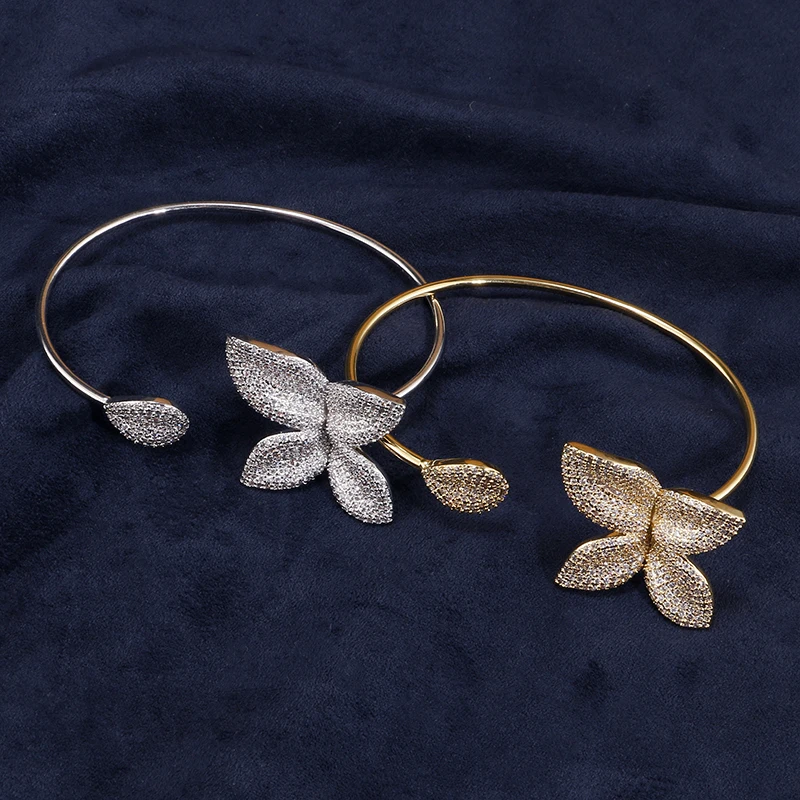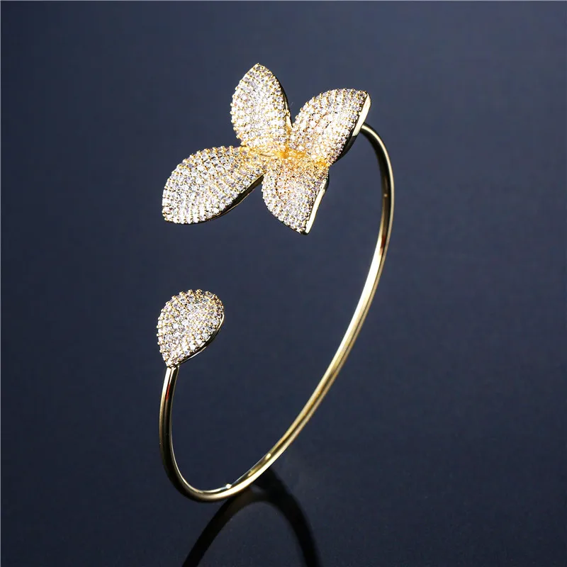 ZAKOL Classic Micro Paved Full Cubic Zirconia Leaves Cuff Bracelet Bangle for Women Luxury Dubai Bridal Jewelry 2025 New