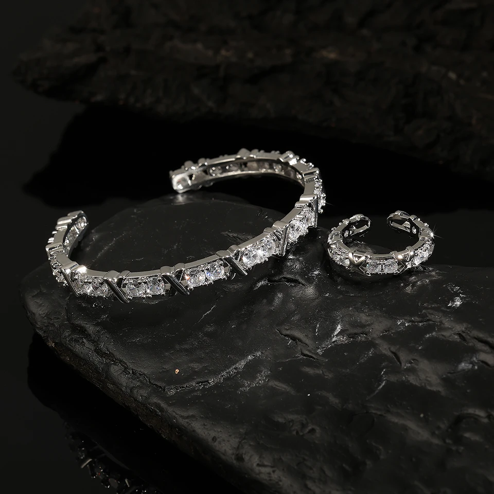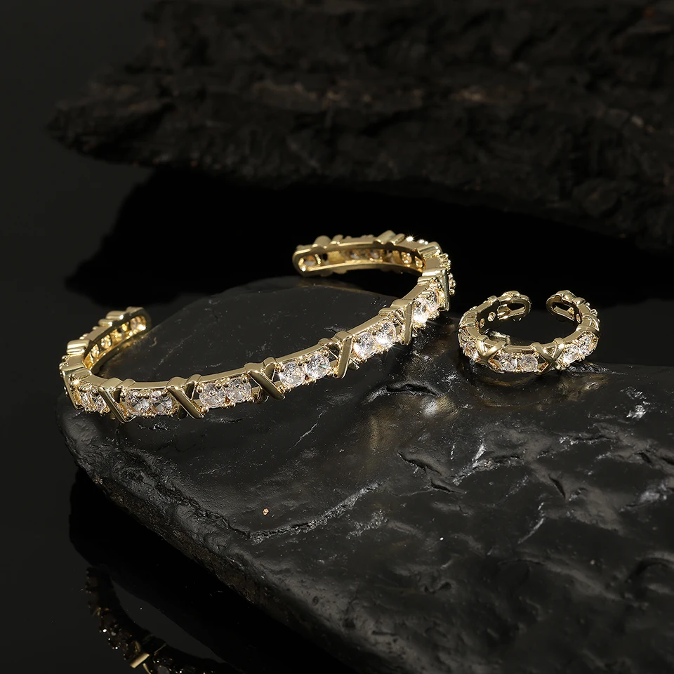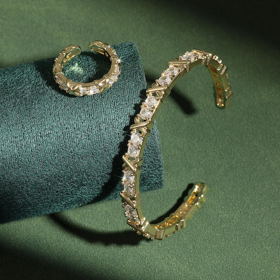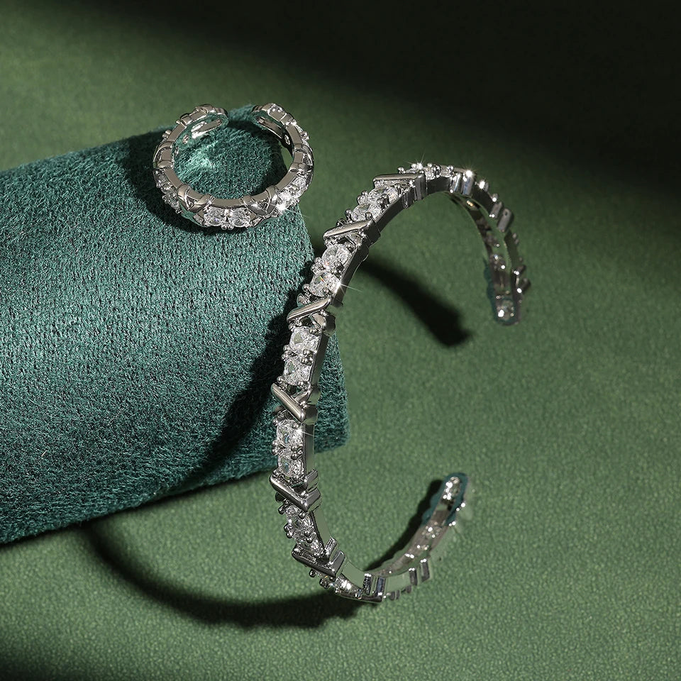 ZAKOL Fashion X Cross Zircon Bracelet Rings for Women Gorgeous Wedding Engagement Party Jewelry Set Factory Wholesale