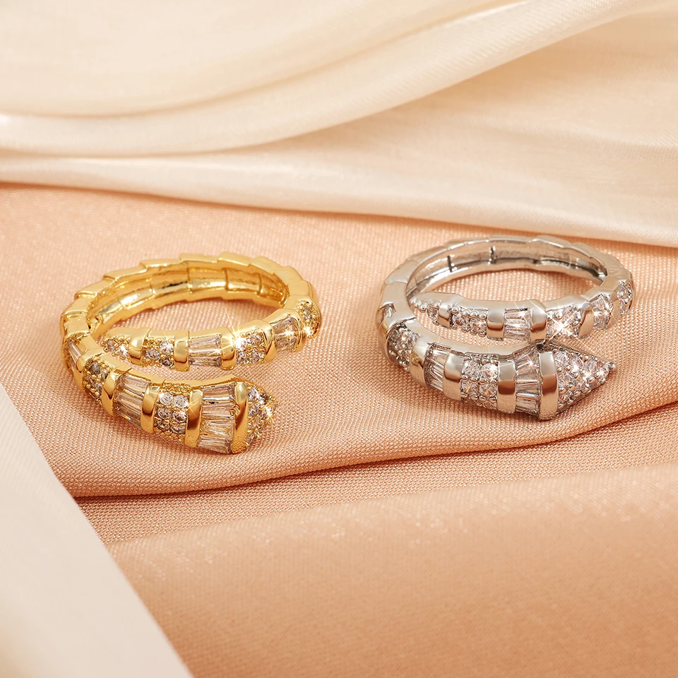 ZAKOL Hot Sale Snake Bone Zircon Open Rings for Women Niche Design Shiny Cubic Zirconia Couple Luxury Jewelry Gifts